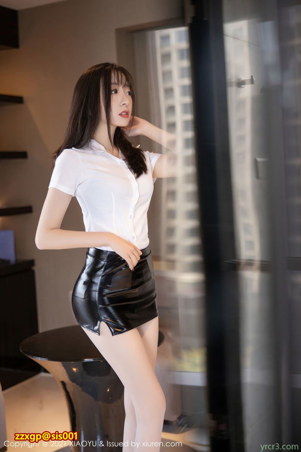 [水印]美腿秀8590 皮裙妹妹蜜桃酱高跟美腿露出透明内内[68P]