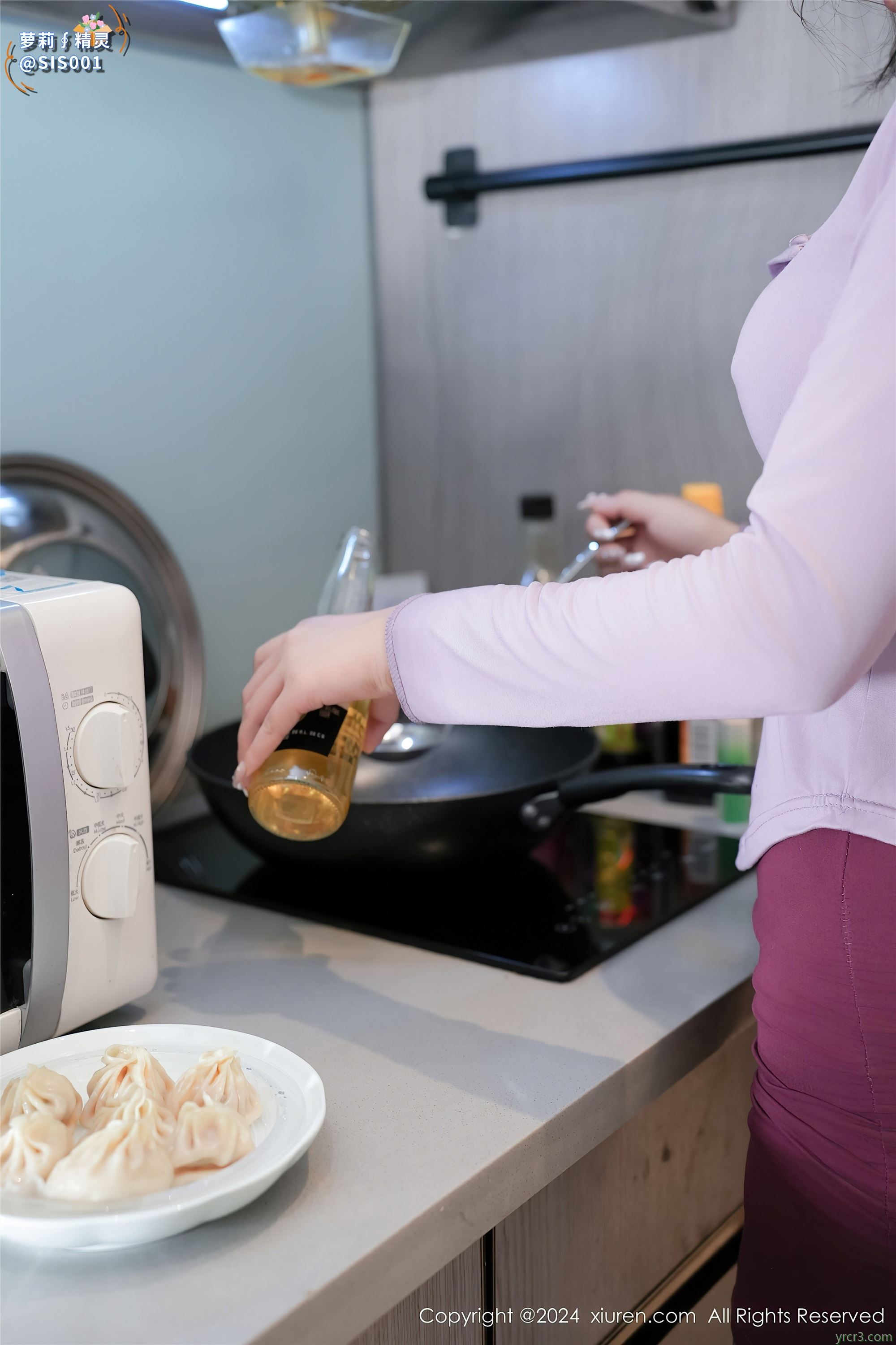 [水印]【达人组出品】[XiuRen秀人网] 2024.05.30 No.8622 Emily尹菲 厨房场景性感紫色包臀短裙配黑丝吊袜秀美腿写真 [85P]